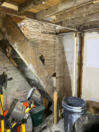 Complete Interior Overhaul: We removed every internal structure—including ceilings, roof joists, and two separate staircases—to create more headroom and unify the layout.